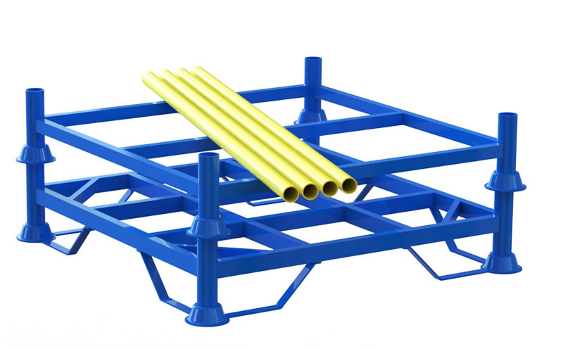 堆垛架,可相互堆3到4層,形成立體存儲模式,無需借助貨架、倉儲籠和托盤等設備,適合用在租賃倉庫、低矮的老式倉庫或車間暫存區等不適合投資貨架的區域。